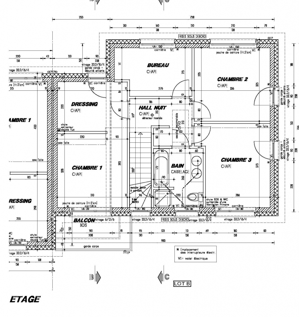 Etage +1 : un hall de nuit, 3 chambres à coucher dont une avec un dressing, un bureau, un balcon et une salle de bains