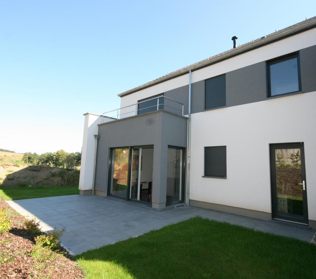 Nouvelle maison jumelée , située dans un nouveau lotissement très calme sur un terrain de +- 3,24 ares et comprenant: