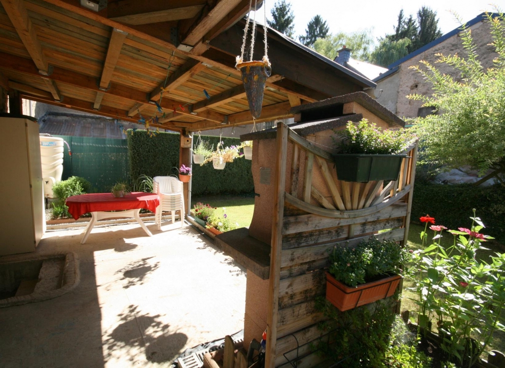 RDC: un hall d'entrée, une cuisine équipée avec accès vers la terrasse et le jardin, un séjour, un garage pour une voiture, une chaufferie et une buanderie