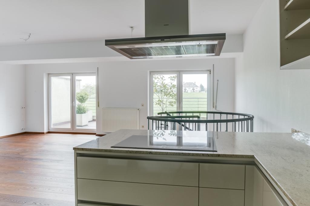 RE/MAX FORUM spécialiste de l'immobilier à Luxembourg vous propose à la vente ce magnifique appartement sur deux niveaux avec une vue imprenable situé au Kirchberg. Il se compose d'un hall d'entrée avec placard intégré, d'un dressing à aménager, une salle douche avec wc séparé. Une superbe cuisine équipée ouverte donnant sur un grand salon - salle à manger, une terrasse de +-24m2 avec une vue magnifique. à l'étage inférieur : un grand hall de nuit, deux grandes chambres en rex-de-jardin. Une chambre avec fenêtre de +- 14,5m2, une chambre de +- 15,5m2 avec baies vitrées avec accès direct sur le jardin commun, une salle de bain avec une baignoire/douche, lavabo double vasques et un wc séparé. Une buanderie commune, une cave de +-7m2 et un emplacement de parking intérieur. Pour la télévision : une antenne pour toute la co-propriété avec 100 chaînes de télé gratuites. Porte blindée et vidéo-visiophone. Proche de toutes commodités, transport en commun, crèches, écoles européenne, centre commercial, institutions européennes.... A voir très vite