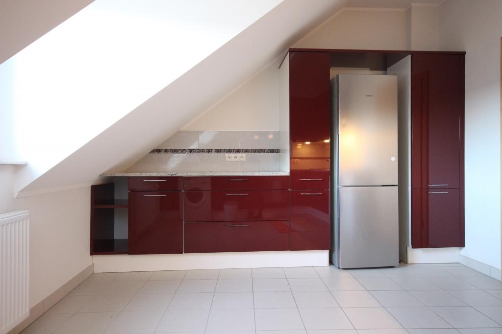 The duplex includes an entrance hall giving access to the master bedroom (+/- 18 sqm) with its own bathroom as well as a dressing for a maximum storage space. Upstairs you will find two other bedrooms (+/- 14 and 10 sqm) of which one has its own shower room, a separated toilet, a nice fully equipped kitchen offering all modern conveniences (+/- 15 m2) as well as a large bright living room (+/- 30 m2) giving access to a large terrace facing South!