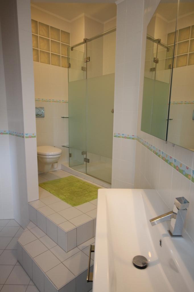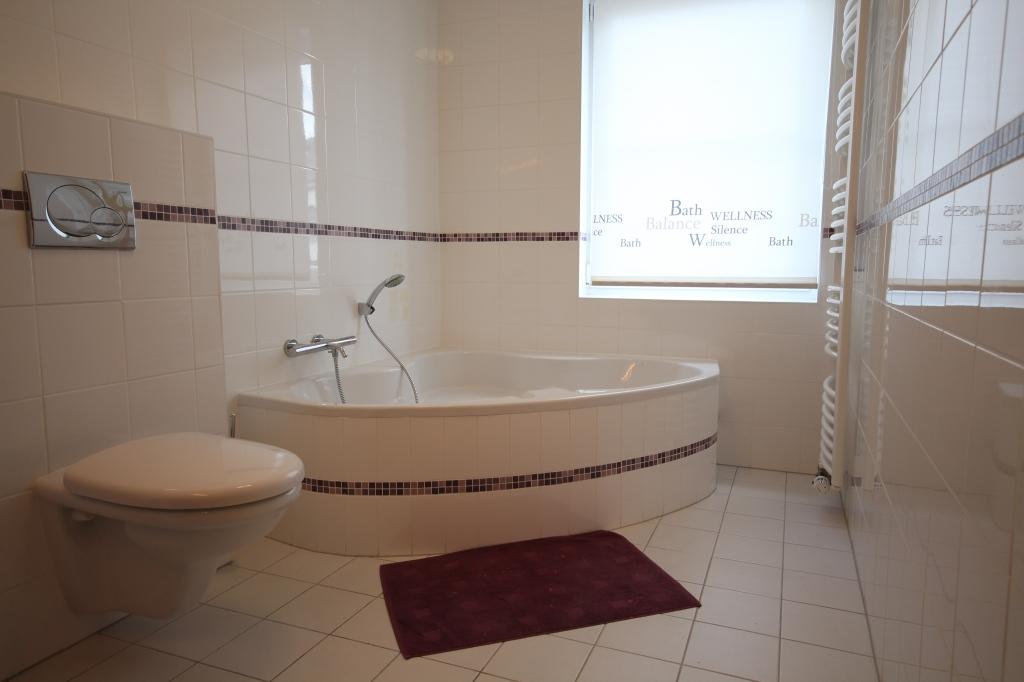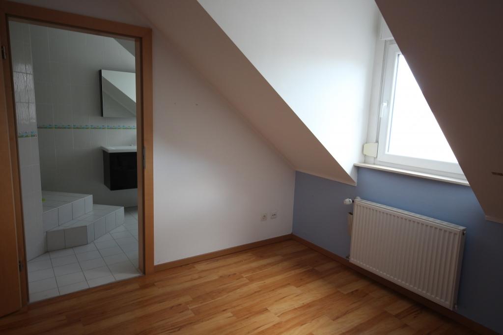 Il se compose comme suit : le hall d'entrée vous donne accès à la suite parentale (env. 18 m2) avec sa propre salle de bains ainsi qu'à un dressing pour un maximum de rangements. A l'étage, vous trouverez deux autres chambres (env. 14 et 10 m2) dont une avec sa propre salle de douche, un wc séparé, une belle cuisine équipée offrant tout le confort moderne (env. 15 m2) ainsi qu'un grand séjour très lumineux (env. 30 m2) donnant accès à une belle grande terrasse exposée plein sud !