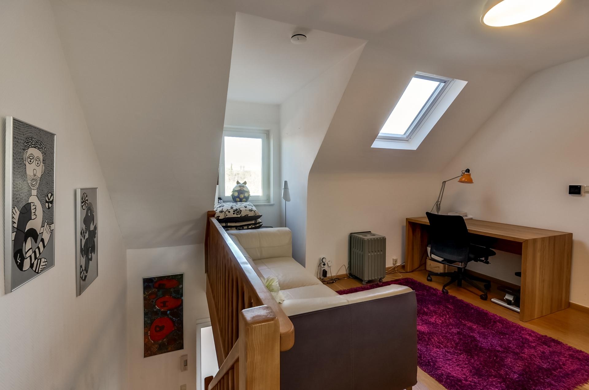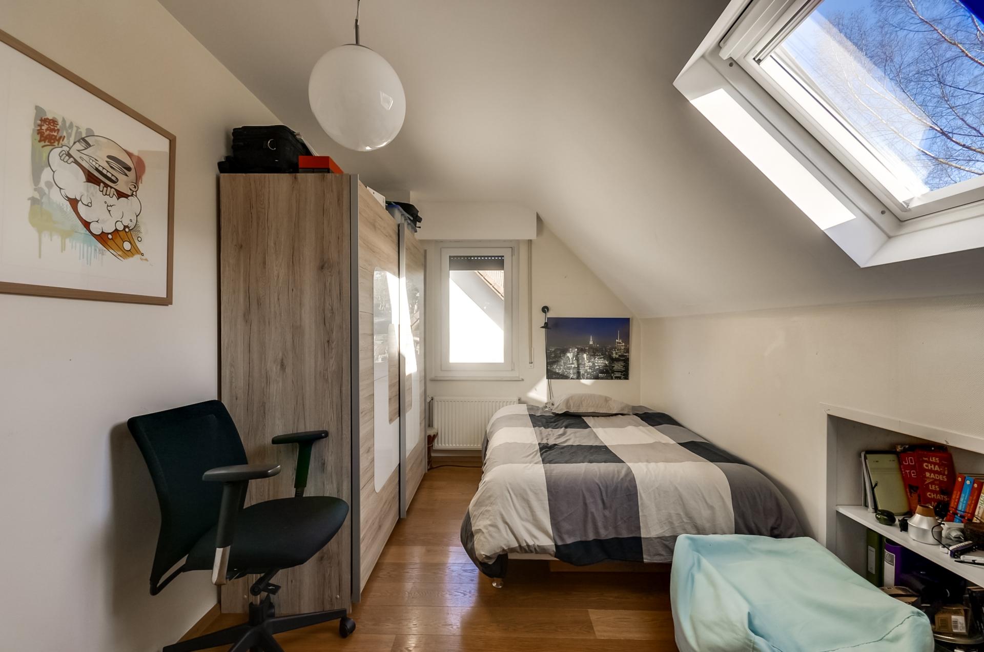 - une grande mézzanine pouvant servir de bureau ou espace de jeux enfants - 3 chambres à coucher d'environ 16m2, 14m2 et 11m2. - 1 salle de douche.