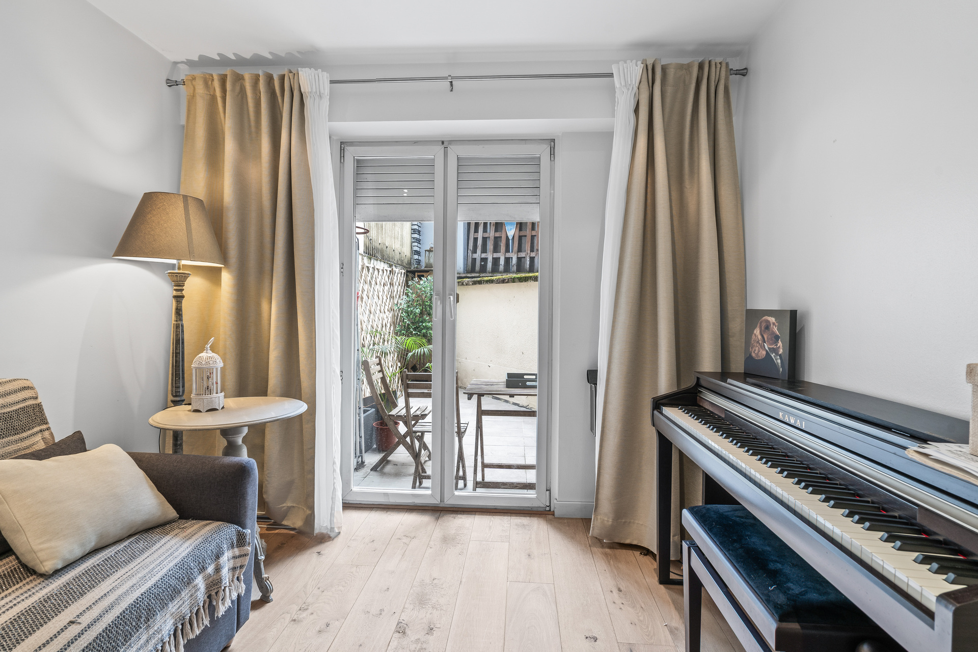 La terrasse extérieure de 12 m², sans vis-à-vis, devient un véritable atout – une respiration en plein cœur de ville.