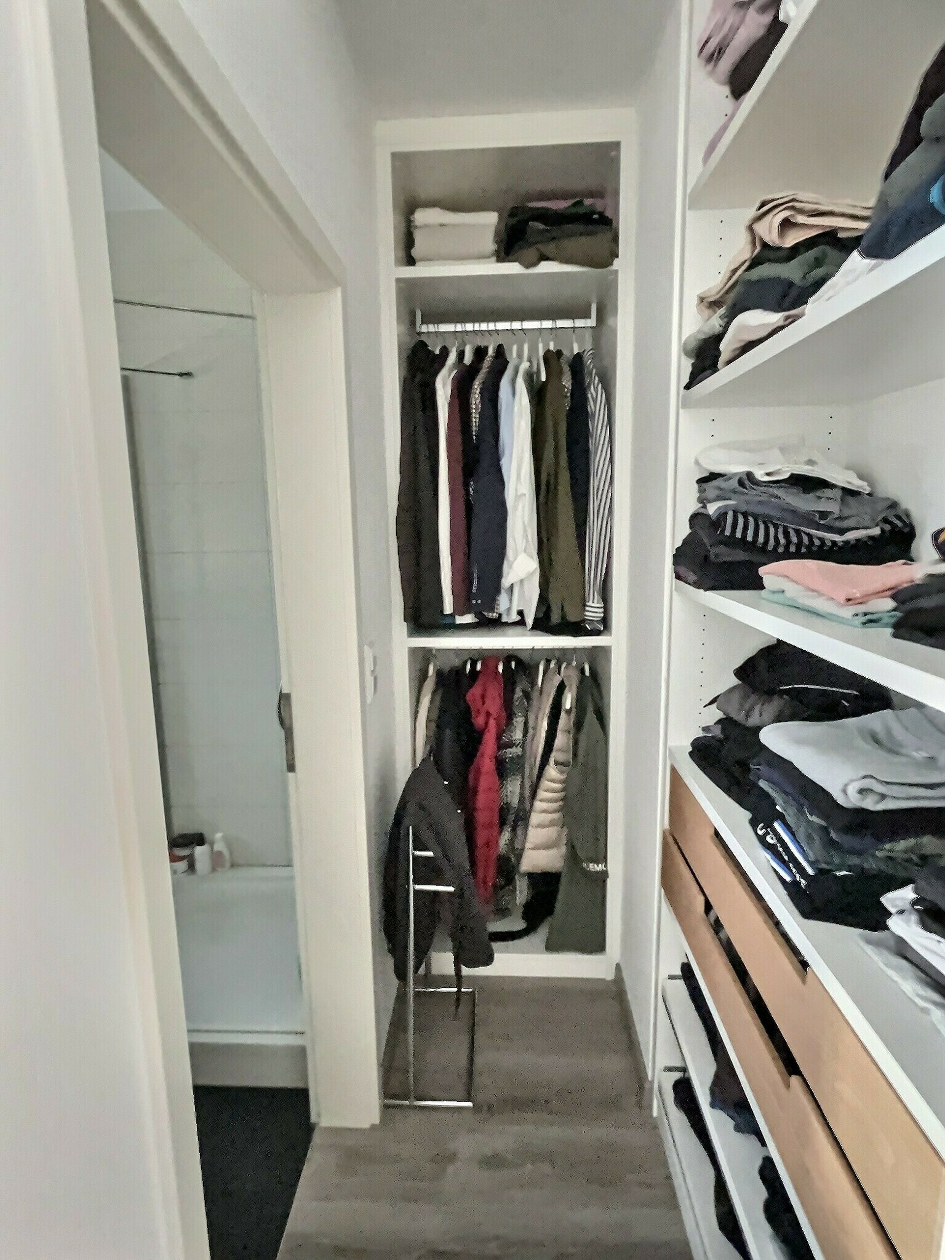 - L'entrée qui se fait par un hall-couloir (+/-5,50m2) desservant l'ensemble des pièces de l'appartement