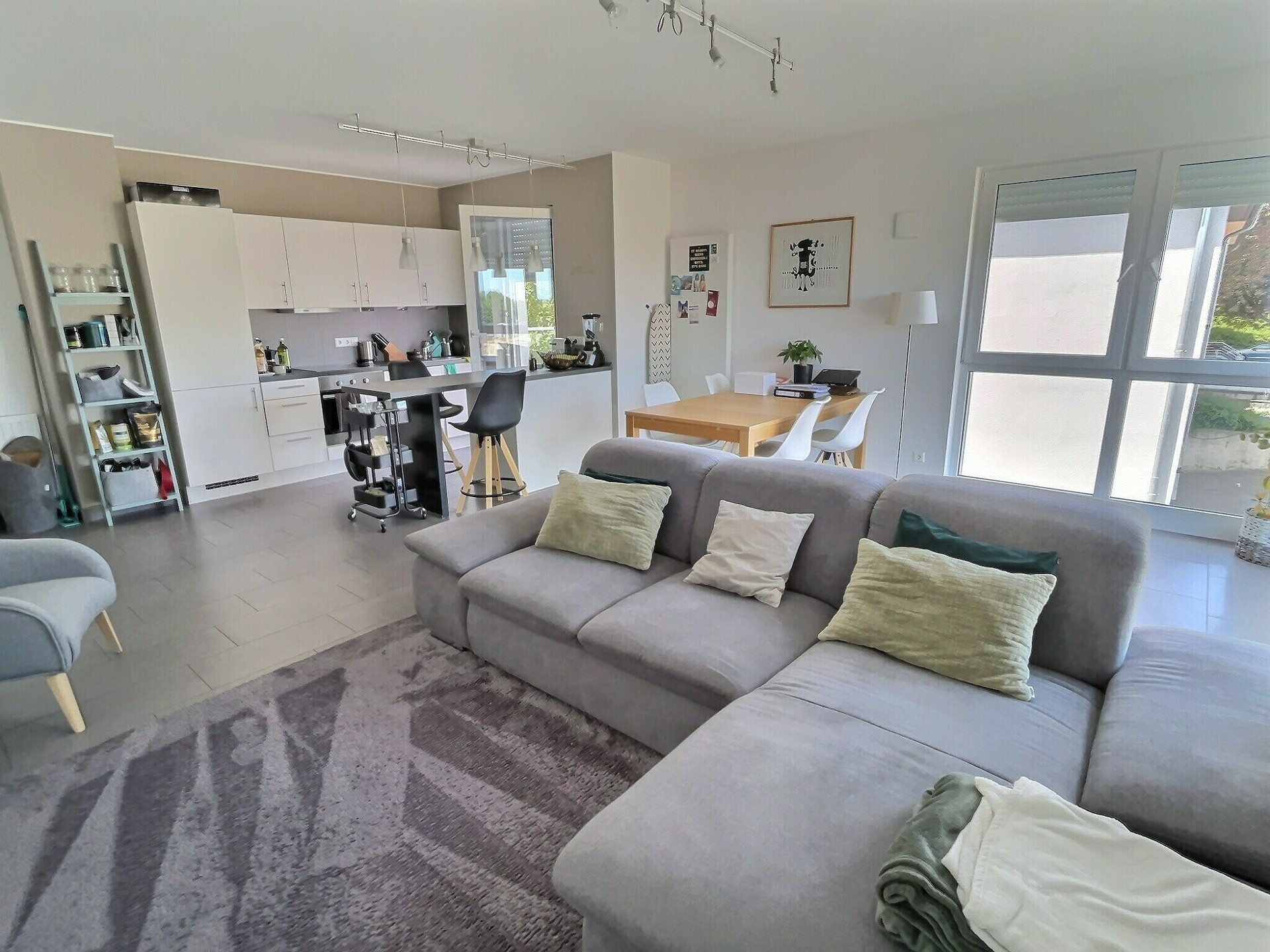 Cet appartement, dans un immeuble de 2013, se trouve au 1e étage d'une petite résidence, avec une orientation Est et Nord.