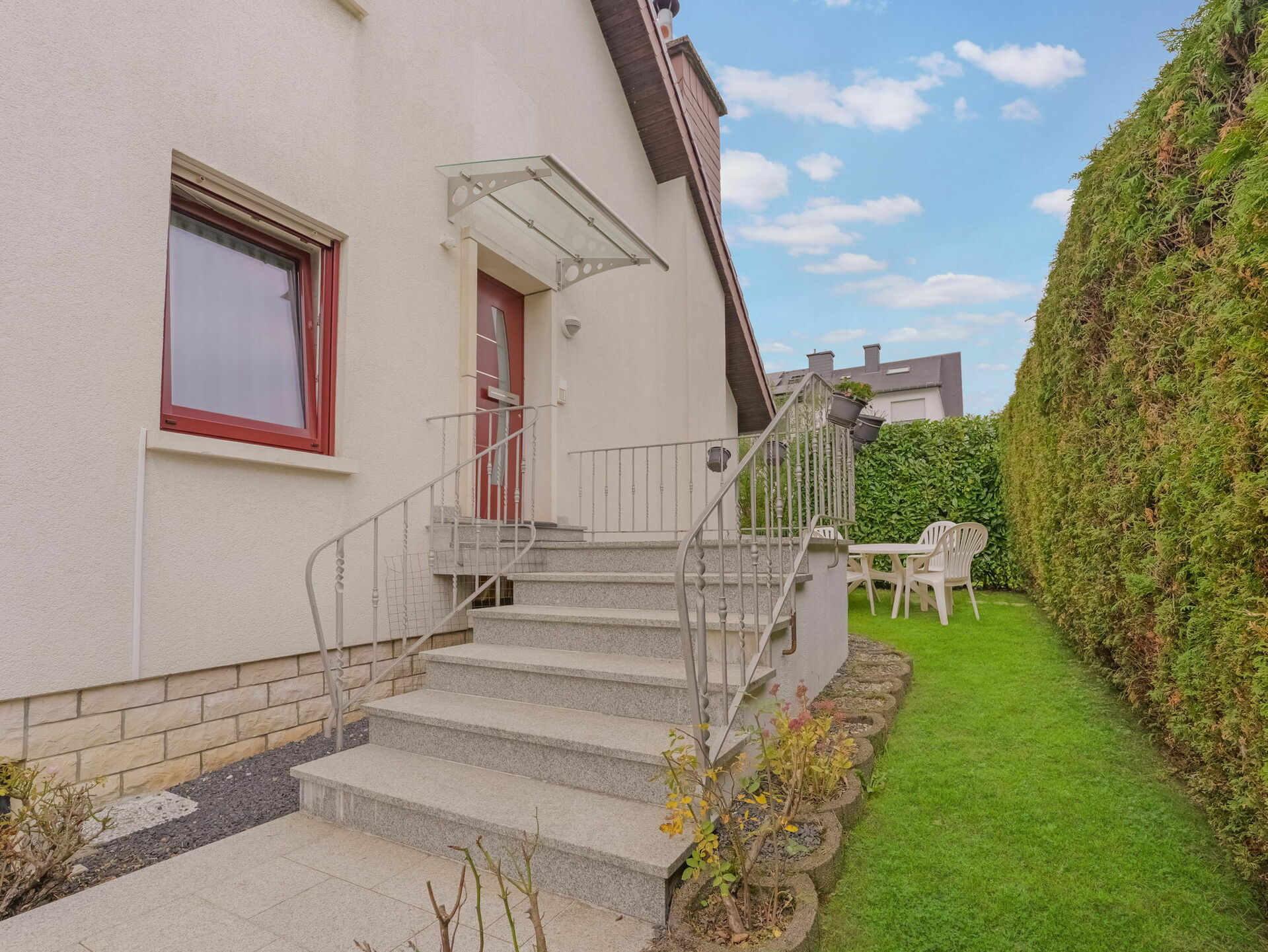 - Un jardin essentiellement sur l'avant et le côté de la propriété (+/-75m2)