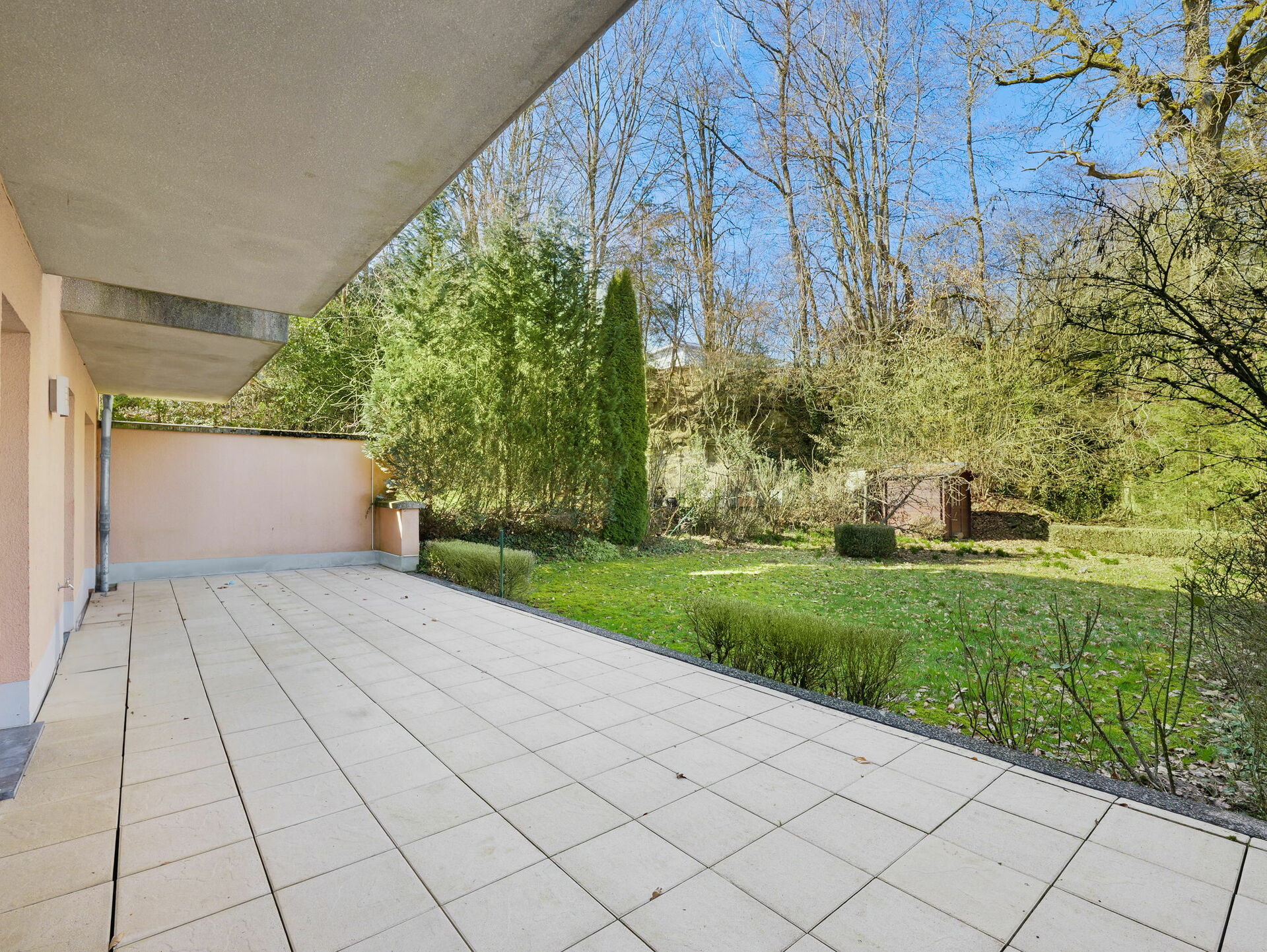 Cet appartement très bien entretenu de 118 m² se compose de 3 chambres, 1 salle de bain, 1 toilette séparée, ainsi que d'un grand séjour lumineux de 40 m² avec accès direct à une terrasse de 45 m² et à un jardin privatif de 120 m², offrant une agréable vue sur la verdure environnante.