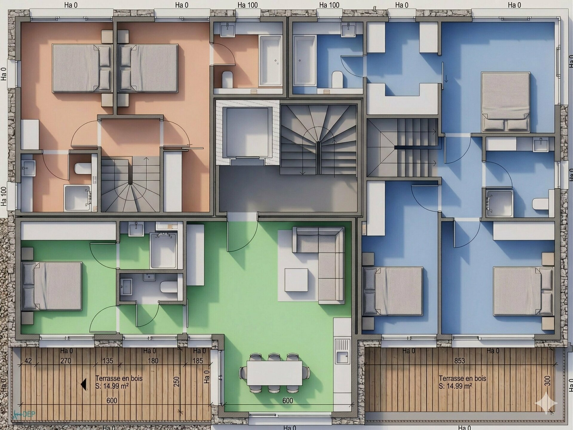 Duplex 1 "BLEU" (011/049) trois chambres d'environ 119,06 m²