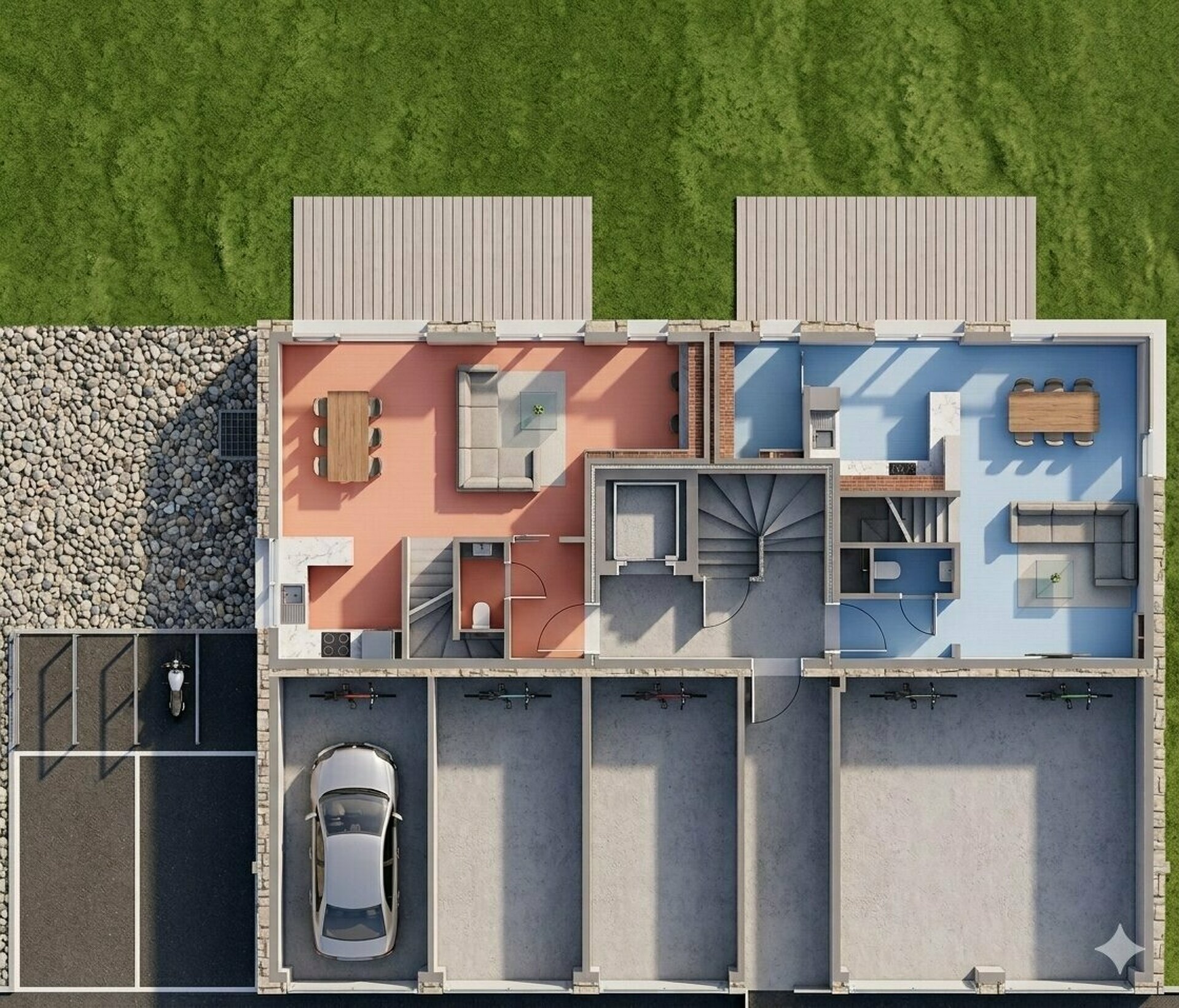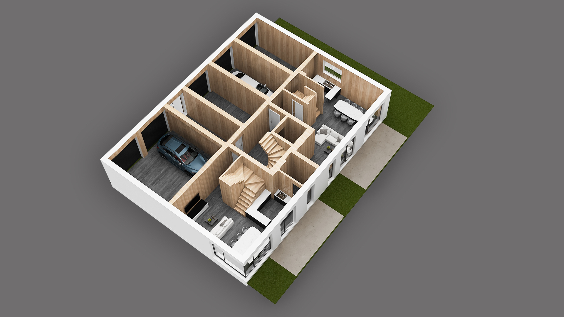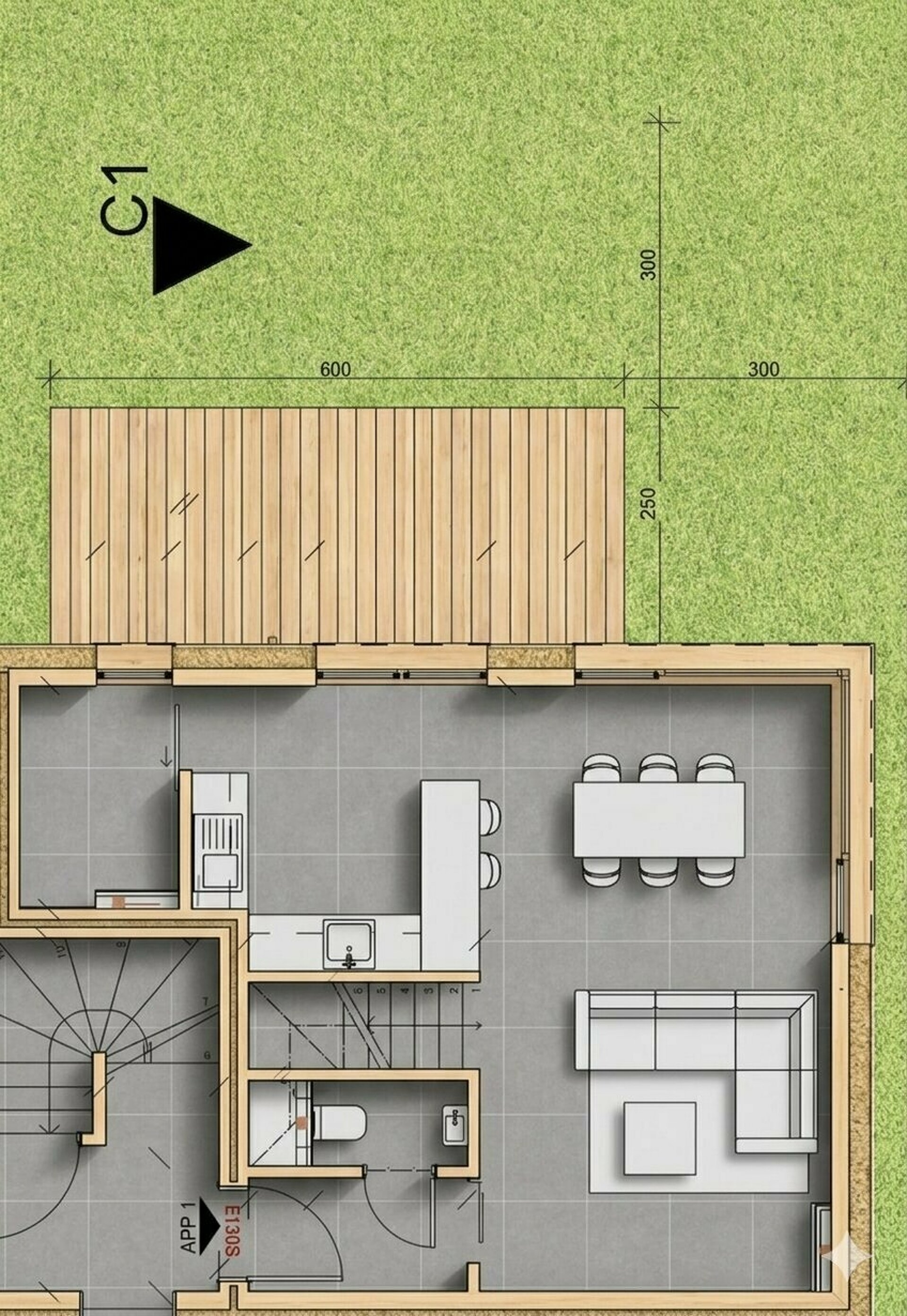 - un hall dentrée - un WC séparé pour vos invités - une cuisine et un séjour « open space » avec accès à une belle terrasse et à son jardin privatif - un cellier