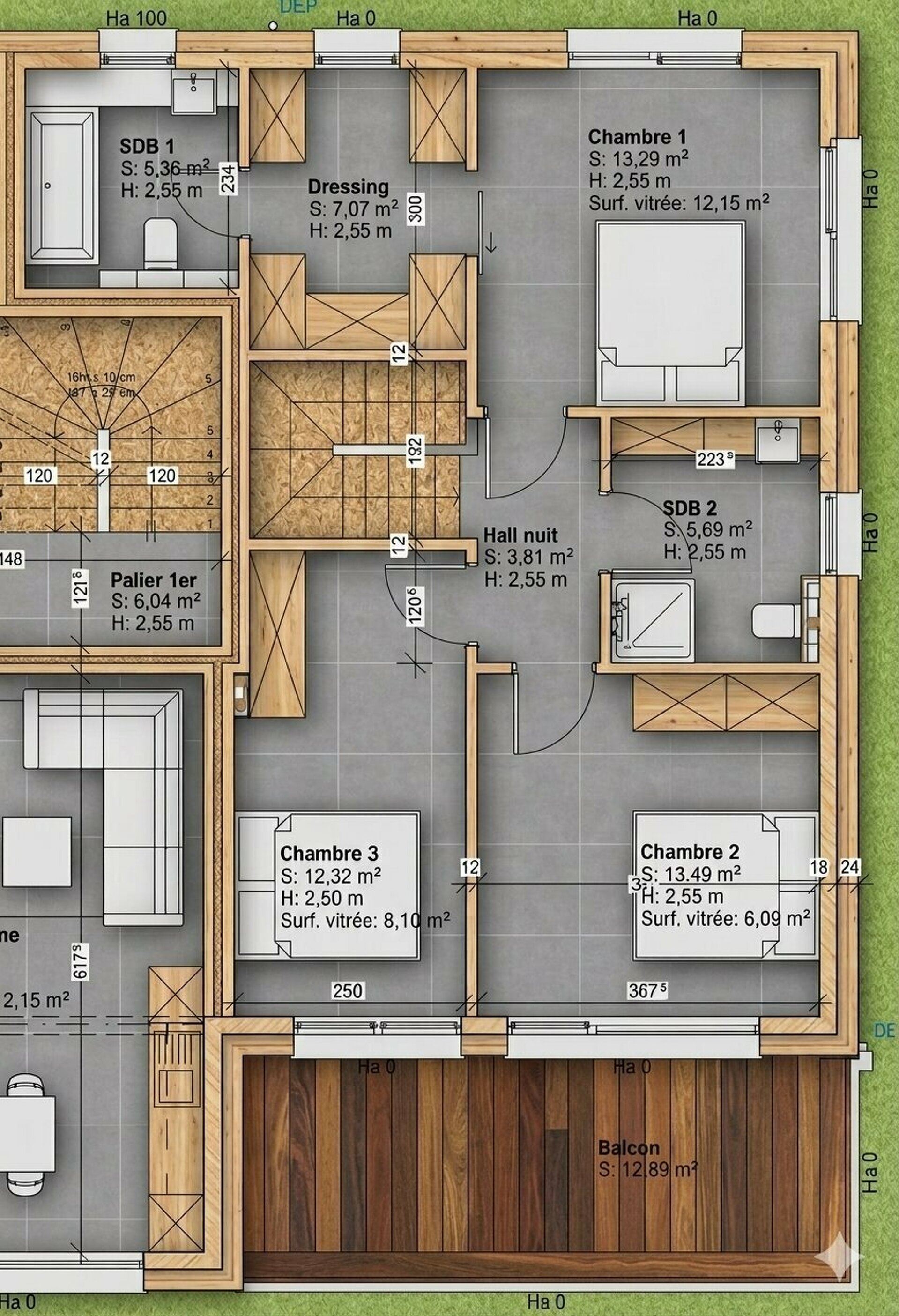 - un hall de nuit - une salle de bains - une suite parentale de luxe avec dressing et salle de bains privative - une deuxième chambre à coucher avec accès au grand balcon - une troisième chambre à coucher avec accès au grand balcon