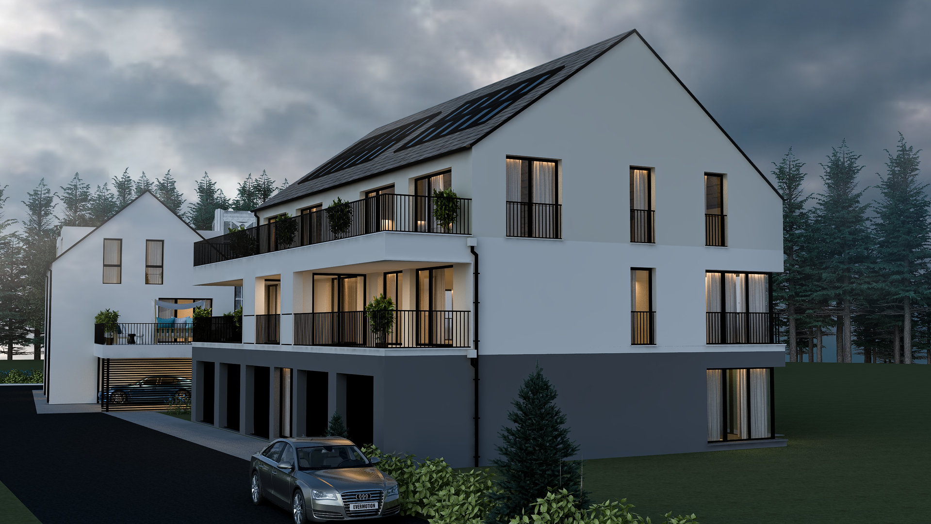 La résidence sera réalisée en construction écologique en bois massif, offrant un confort de vie optimal, une excellente performance énergétique et une architecture moderne avec de grandes terrasses et balcons.