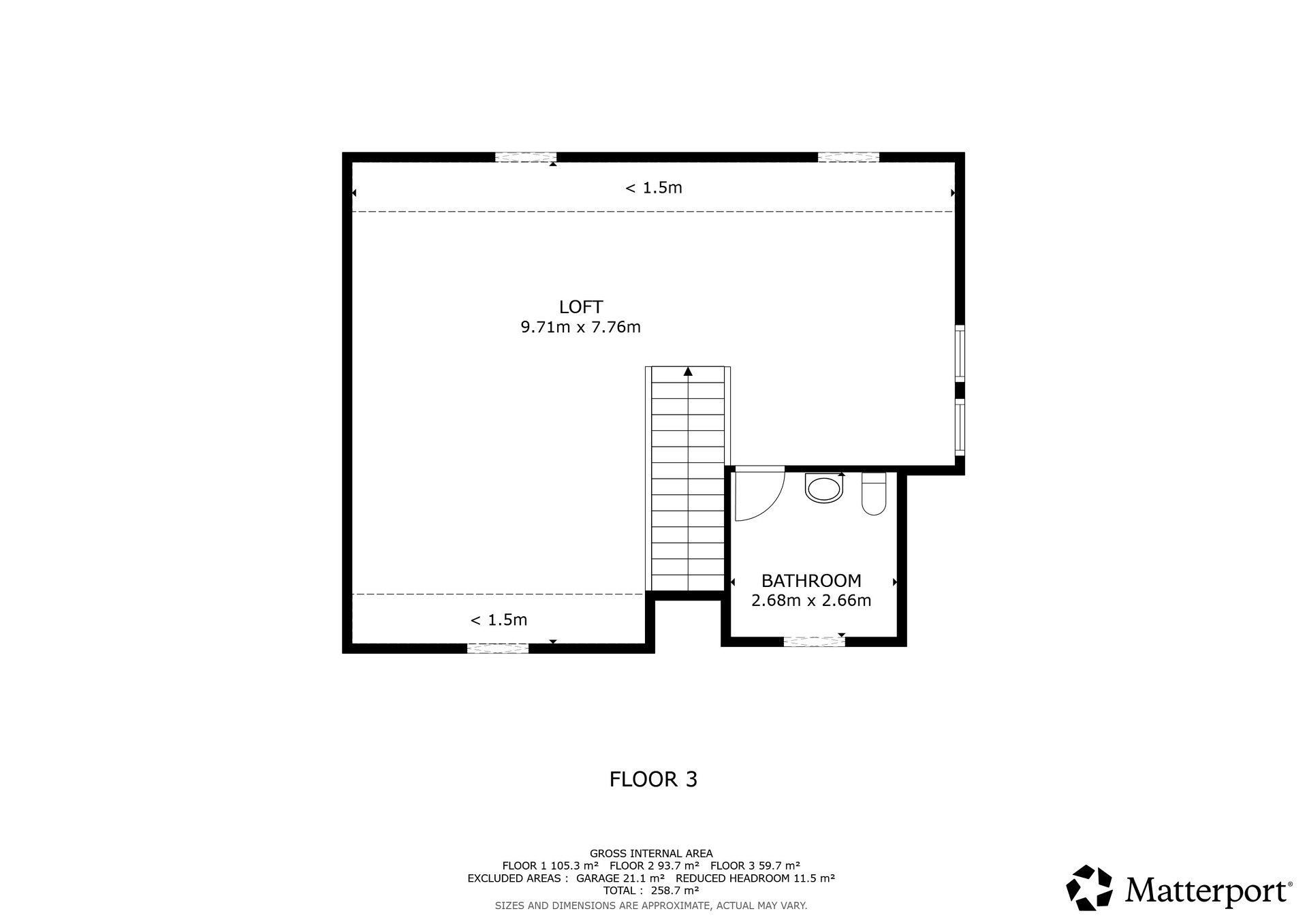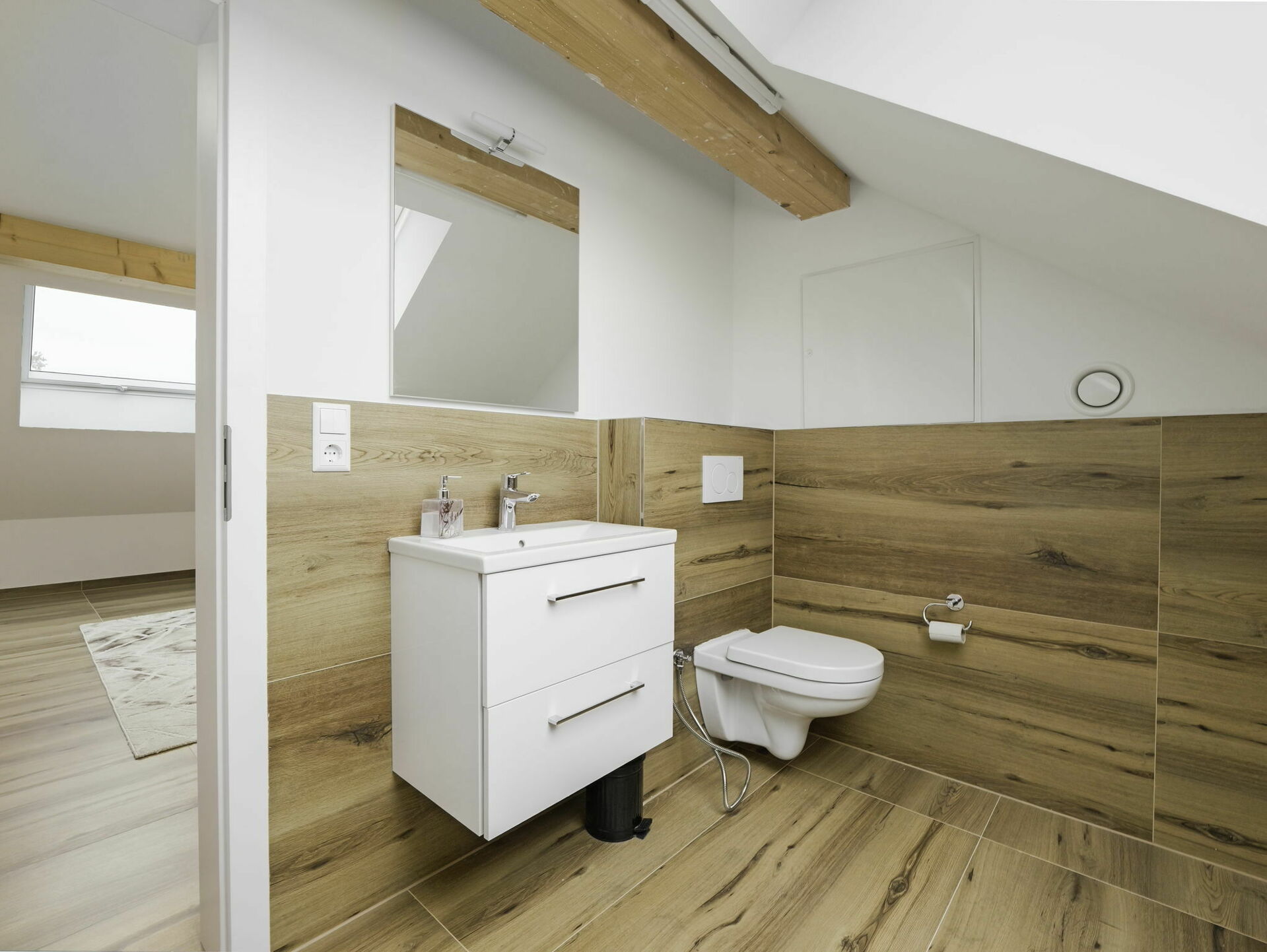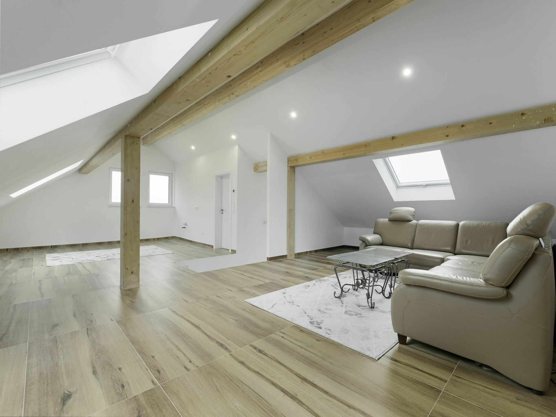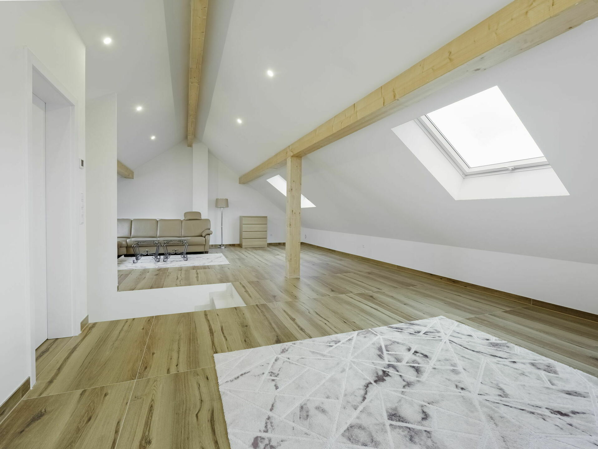 - Grand loft ouvert (± 75 m² au sol), idéal pour un bureau, une salle de jeux, une salle de sport ou une chambre supplémentaire