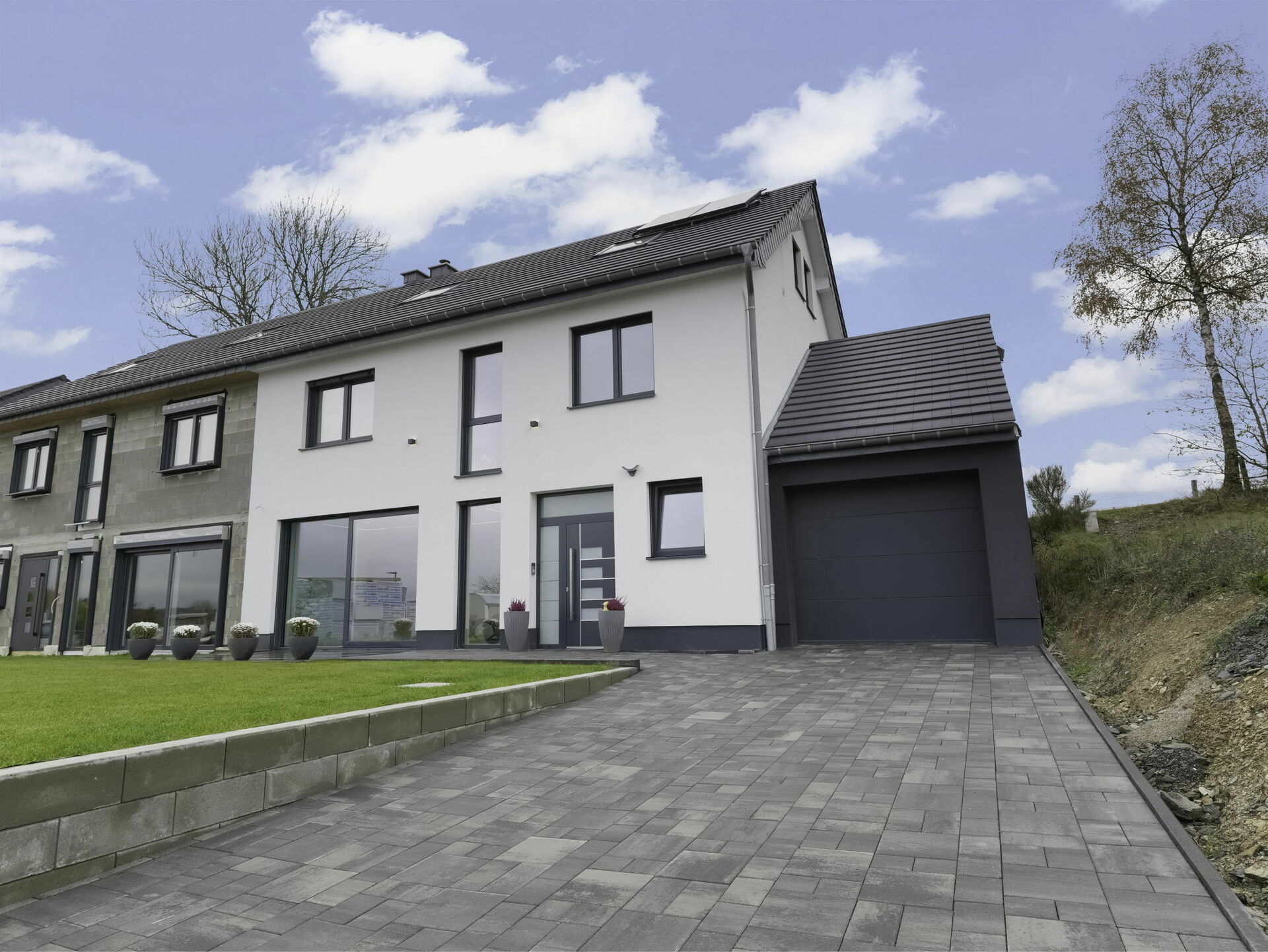 Située dans un quartier résidentiel calme et verdoyant à Gruemelscheid (commune de Winseler), cette maison contemporaine séduit par son style épuré, ses volumes généreux et sa qualité de finition. Offrant une surface habitable de ± 258.7m² et d'une surface totale de 291.3m², elle se compose de 4 chambres, d'un loft aménagé, de 3 salles de bains, ainsi que d'un spacieux espace de vie baigné de lumière.
