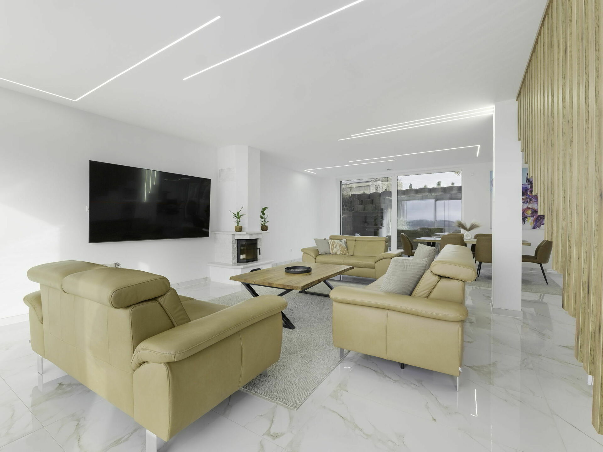 - Vaste séjour lumineux (± 6,14 m x 5,03 m) avec baies vitrées, accès terrasse et jardin orientés plein sud