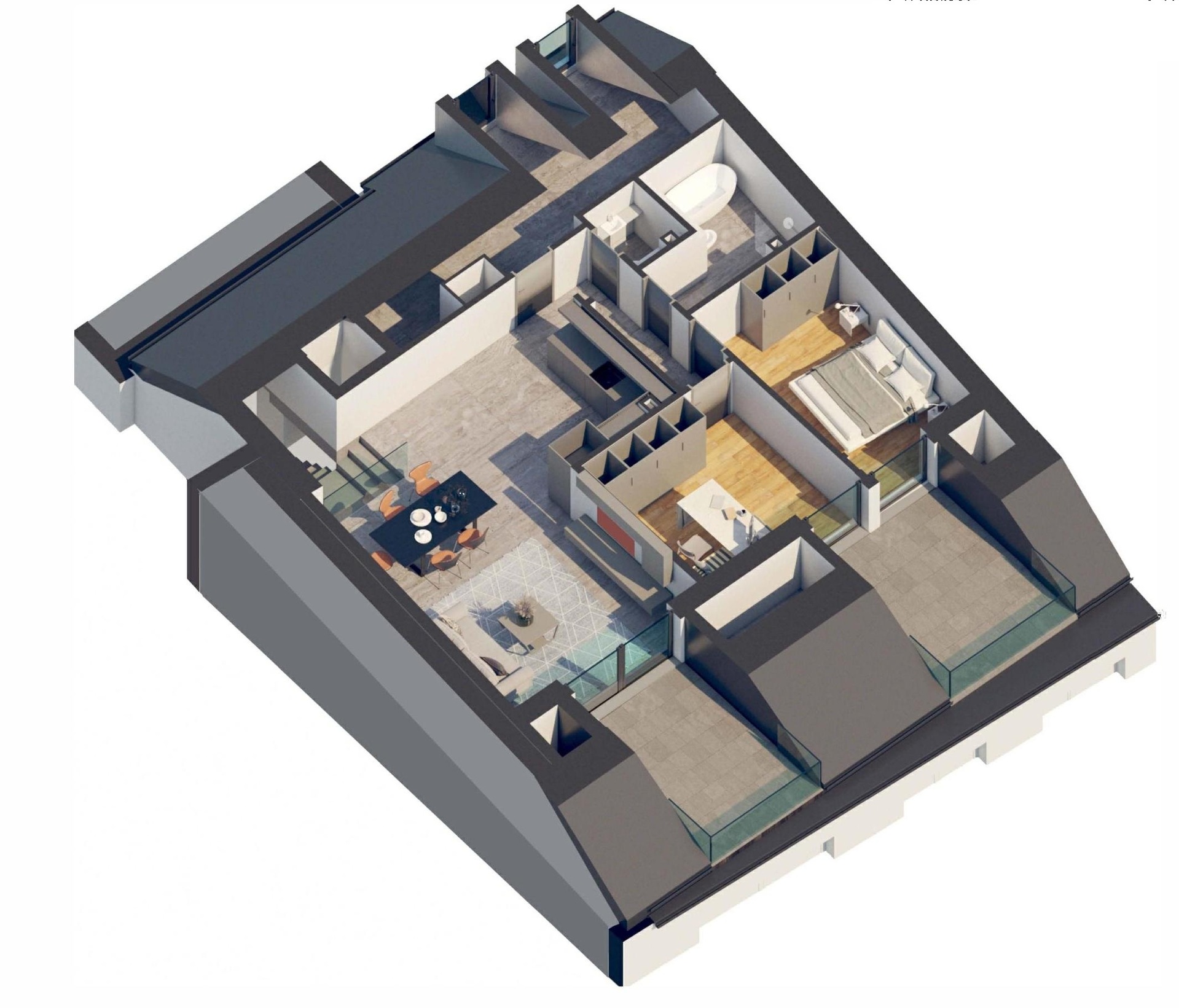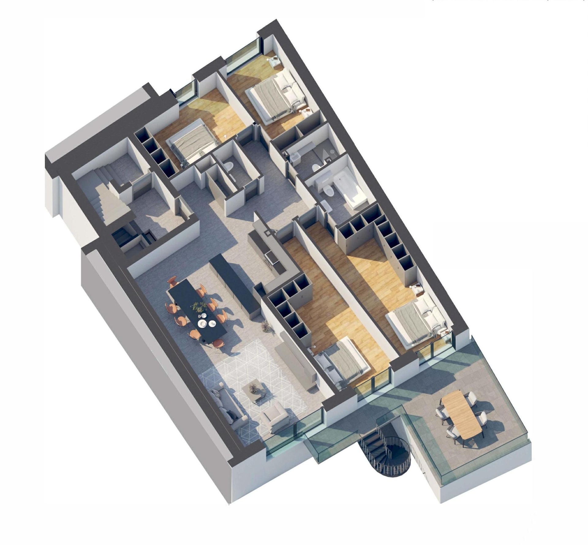 Deux chambres à coucher avec accès à une seconde terrasse