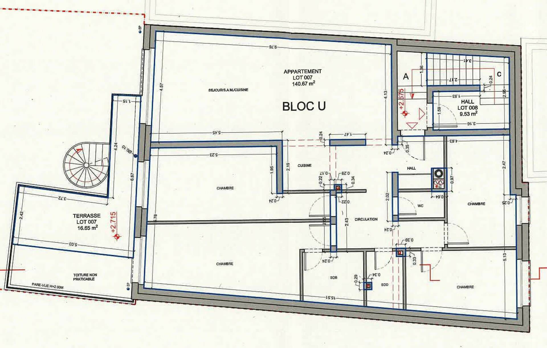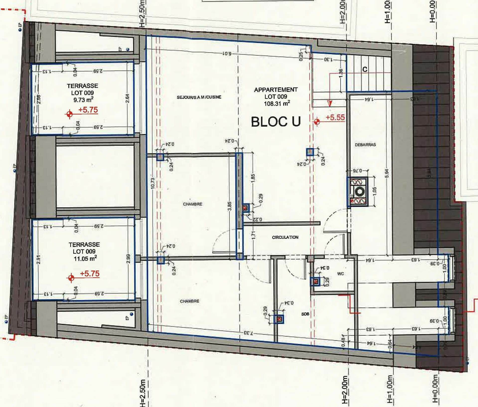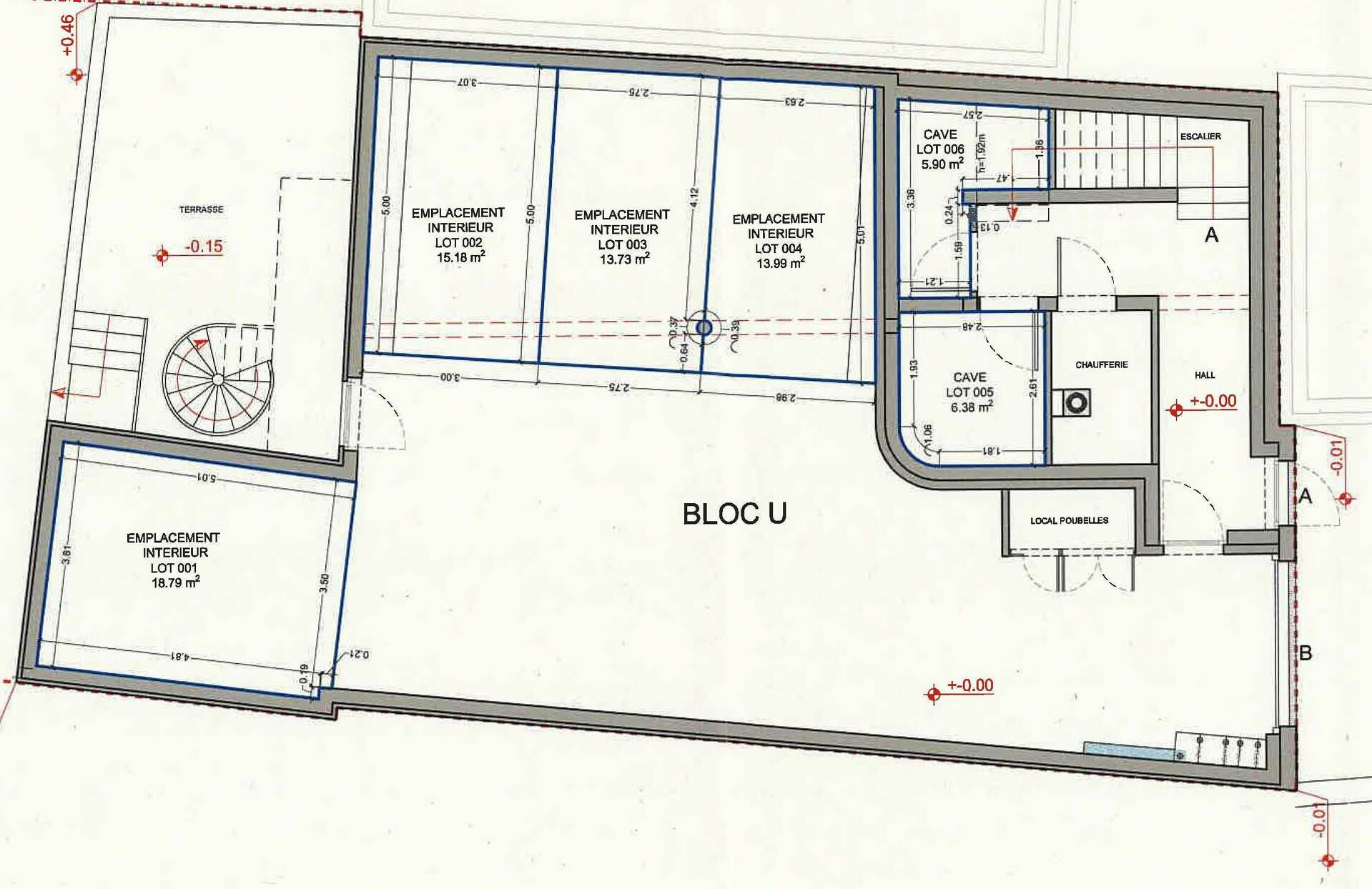 Description du bien – LOT 008 & 009 Surface cadastrale d'environ 118 m², répartie comme suit :