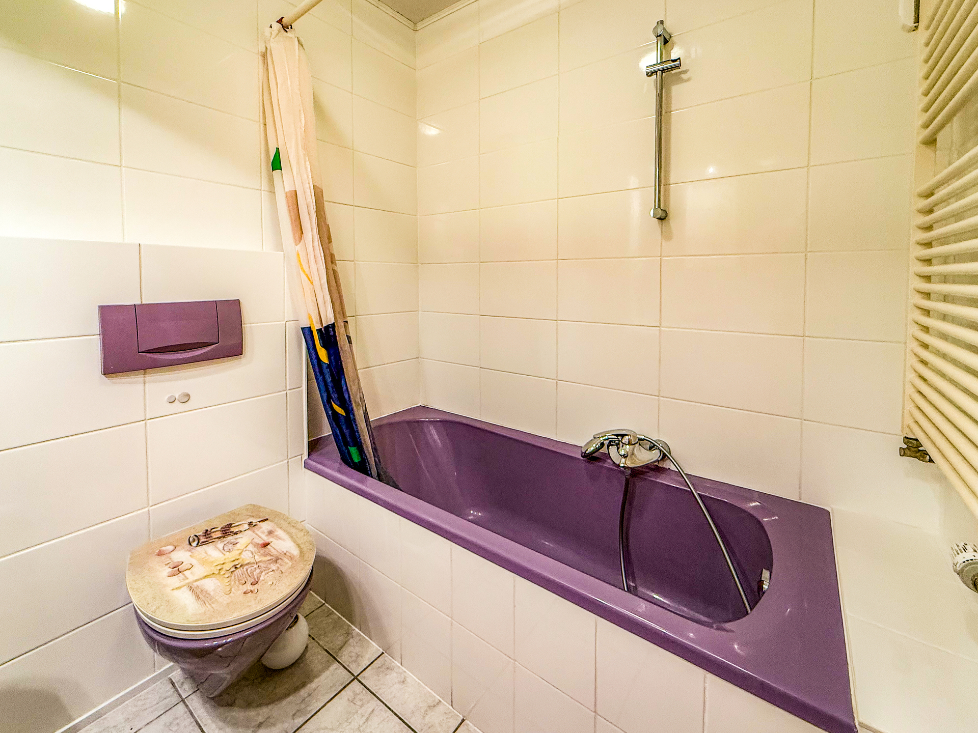 Cet appartement se compose d'un lumineux séjour de ±26,90 m², d'une chambre de ±14,50 m², d'une salle de bains avec baignoire-douche de ±4,26 m², d'un WC séparé de ±1,76 m², d'une cuisine de ±7,12 m², ainsi que d'un débarras de ±1,01 m².