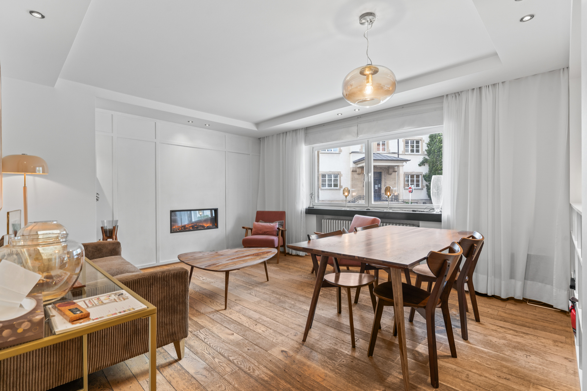 L'entrée donne le ton : parquet massif silencieux, lumière sud-ouest filtrée par de fins voilages, murs blancs impeccables… L'atmosphère apaise immédiatement. La pièce de vie principale, confortable et modulable, peut parfaitement accueillir une salle d'attente ou un bureau de consultation. La deuxième chambre, avec accès direct à la terrasse, s'adapte selon les besoins : espace de travail complémentaire, salle privée, zone de repos.