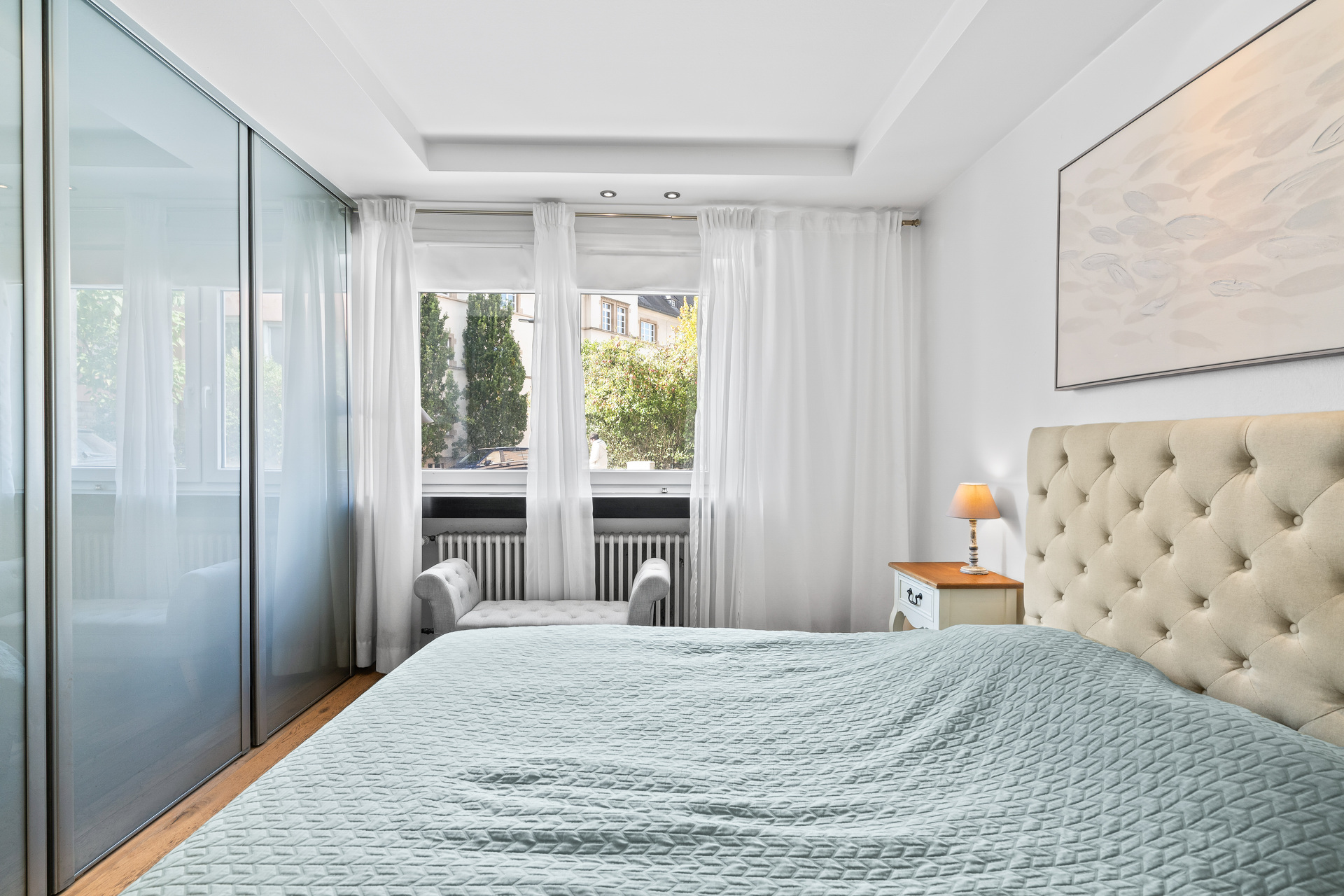 La terrasse extérieure de 12 m², sans vis-à-vis, devient un véritable atout – une respiration en plein cœur de ville.