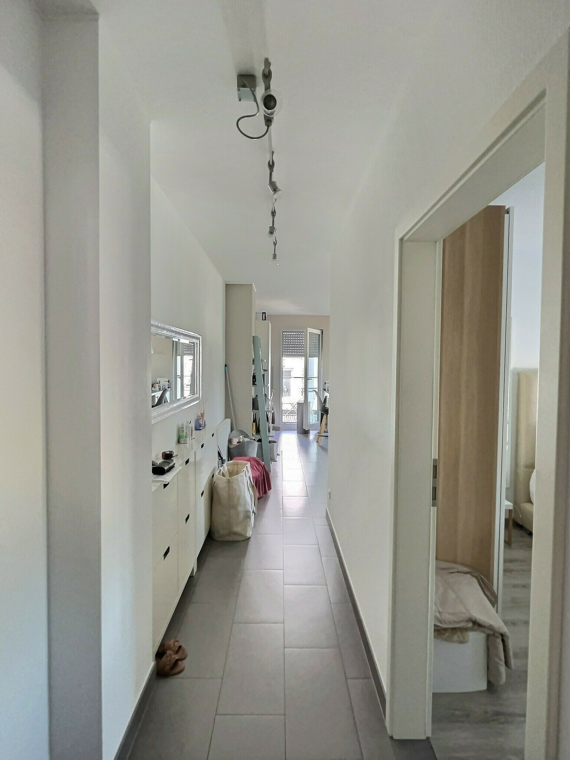 - L'entrée qui se fait par un hall-couloir (+/-5,50m2) desservant l'ensemble des pièces de l'appartement
