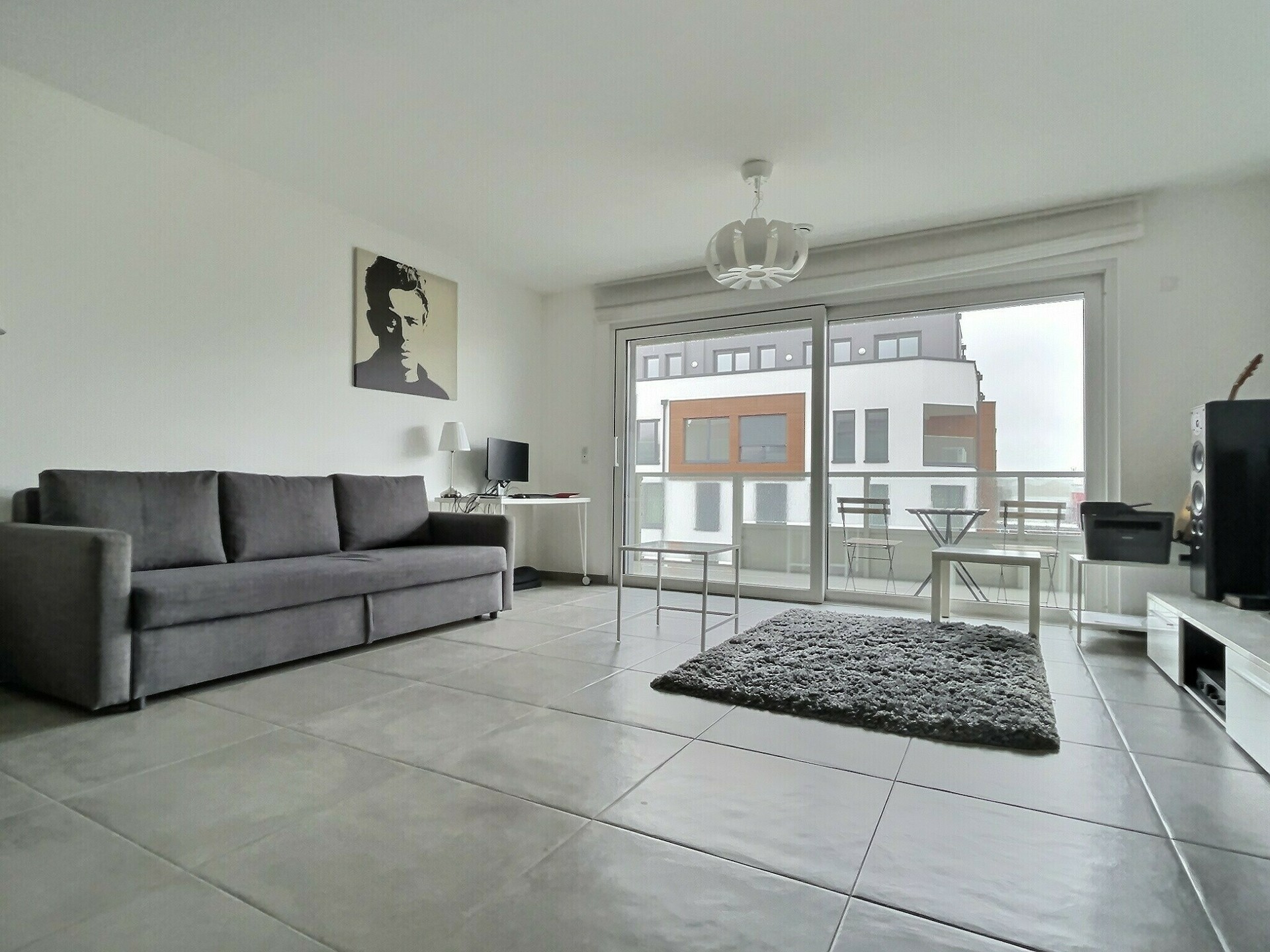 - Un grand espace de vie (+/-30m2) avec sa cuisine équipée donnant sur un grand balcon orienté Sud / Sud-Ouest