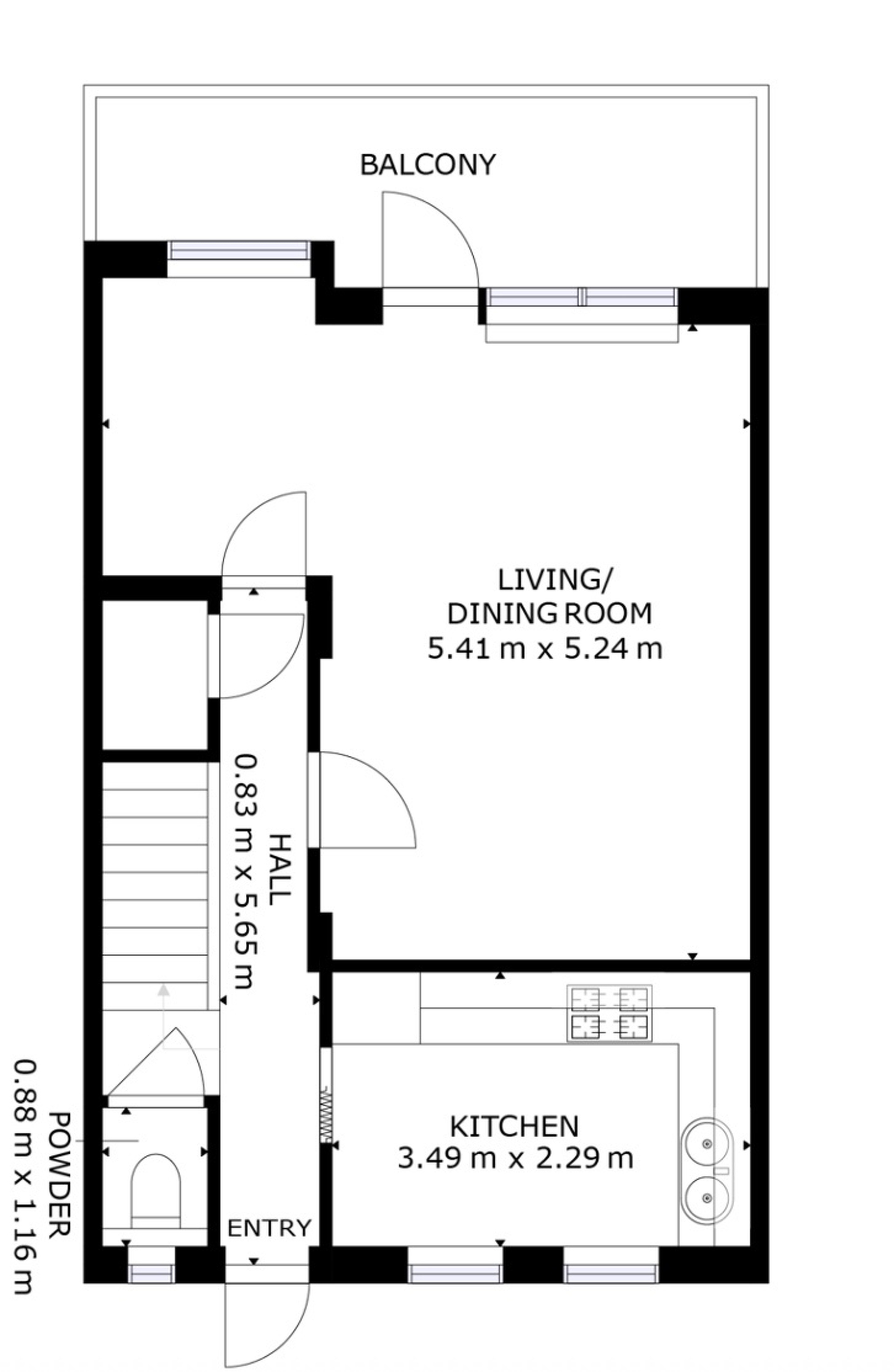 Hall d'entrée accueillant WC séparé Cuisine indépendante Salon et salle à manger lumineux Accès direct à la terrasse